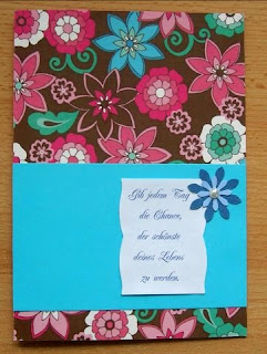 Gestern Abend habe ich das Büchlein gebastelt und bei pauline gibt´s die Anleitung. Verschlossen habe ich es gleich doppelt - mit einem Klettverschluss und einem Band :)