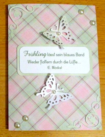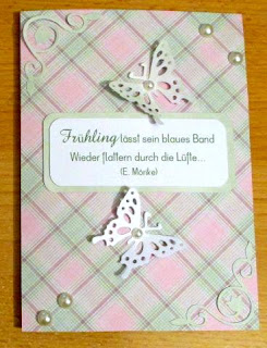 Diese Schmetterlingskarte habe ich gerade fertiggestellt. Sie ist recht einfach geworden und dürfte daher als "clean and simple" durchgehen ;)
