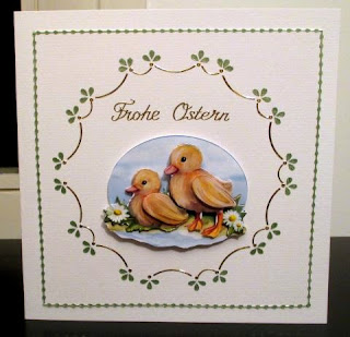 Wie ihr seht, habe ich heute schon eine Osterkarte gebastelt und das, obwohl bei uns derzeit tiefster Winter herrscht...