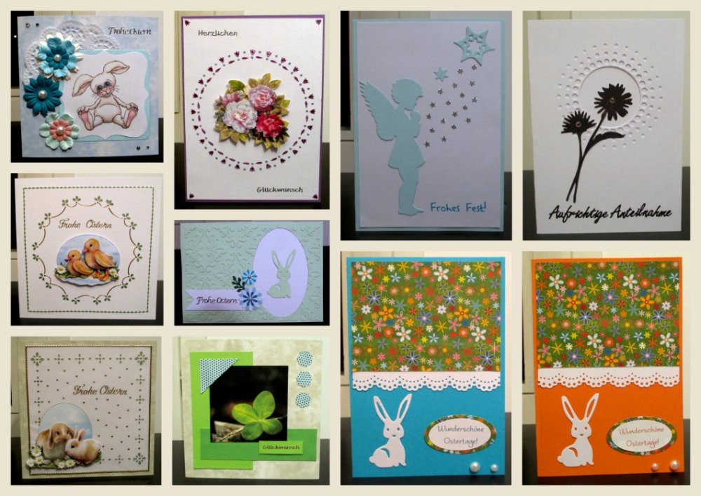 Bei uns scheint sich der Frühling schon anzumelden und so passt es sehr gut, dass ich im Februar auch einige österliche Karten gebastelt habe. Wie immer zeige ich meine Collage auch diesmal wieder bei annasart...