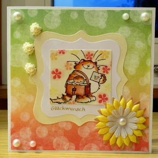 ...habe ich für diese frühlingshafte Karte verwendet. Vielleicht kann ich den Frühling ein bisschen locken, denn bei uns ist es momentan regnerisch und kühl.