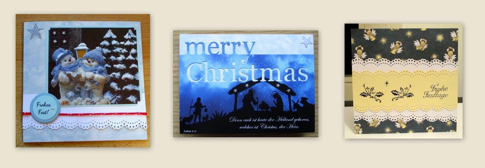 Meine Werke vom Dezember habe ich in einer Collage zusammengefasst und zeige sie beim kreativen Monat Dezember, auch wenn es diesmal nur drei Karten sind.