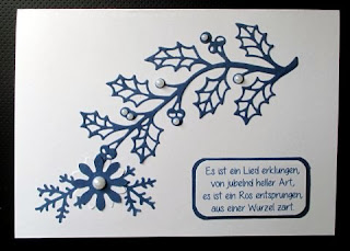 Bei uns gibt es derzeit Sonnenschein, Wärme (keine Hitze) und immer wieder auch ein bisschen Regen. So habe ich heute Nachmittag gebastelt und möchte euch zwei weihnachtliche cas-Cards (clean and simple) zeigen. Ich habe sie sehr ähnlich - einmal im Quer- und einmal im Hochformat - gemacht.