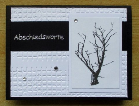 Ich habe diesmal eine Kondolenzkarte gebastelt. Leider brauche ich solche Karten immer wieder. Der Anlass zum Versenden ist zwar stets sehr traurig, aber ich hoffe doch, dass ich mit dieser Karte auch ein wenig Trost spenden kann...