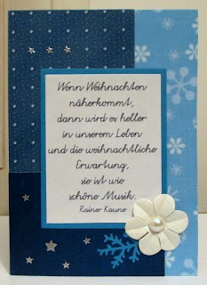 Weihnachtliche Sprüche finde ich auf Karten immer wieder schön. Da ich im Word-Programm hübsche Schriften installiert habe, wollte ich davon gleich zwei ausprobieren. So sind heute weihnachtliche Spruchkarten entstanden. Die Schriftfarbe ist übrigens dunkelblau - das sieht nur auf